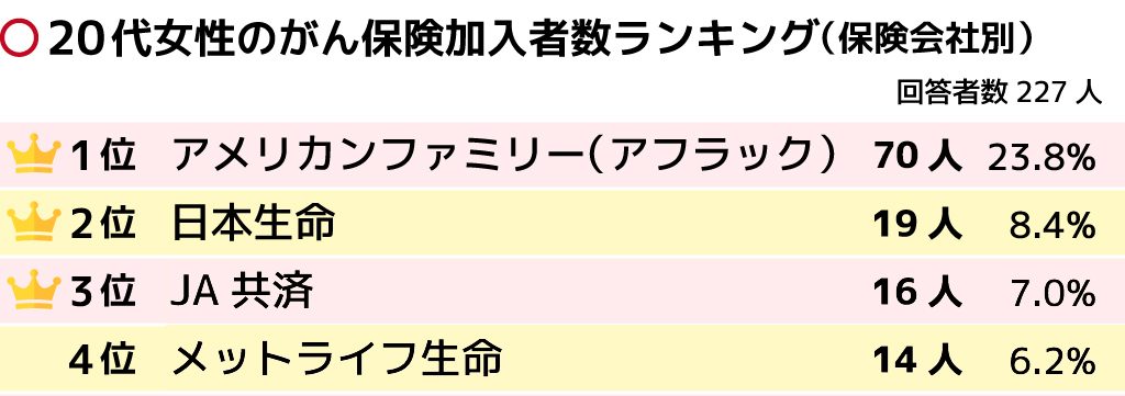 20代の女性のがん保険加入者ランキング