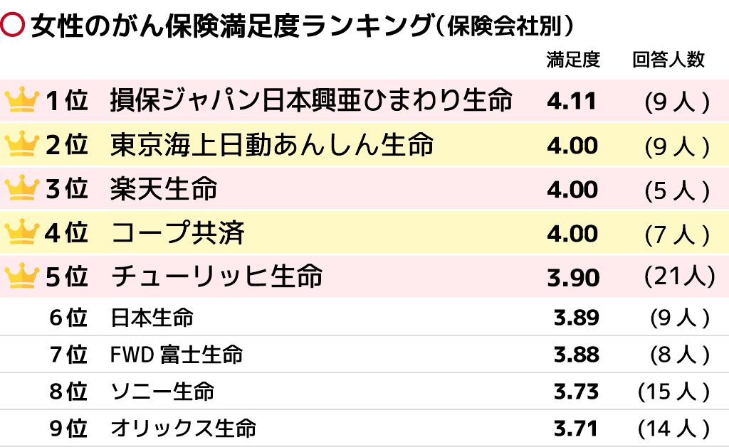【全体】女性のがん保険満足度ランキング